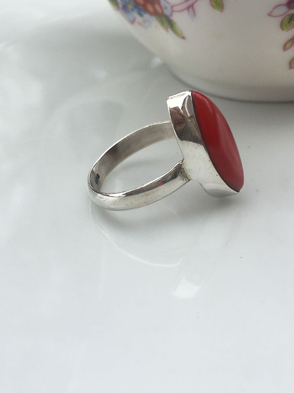 Red Coral ring sterling silver size 8